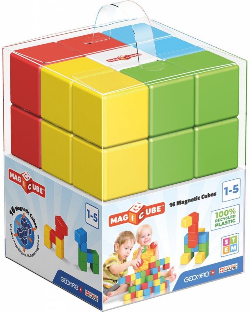 Magnetické kostky Geomag Magicube pro stavění objektů dle vlastní fantazie. Jsou skvělým doplňkem mnoha dětských her, kdy poslouží jako stáje pro koníky, ohrádky pro zvířata nebo třeba budovy, tunely a mosty k vláčkodráze.