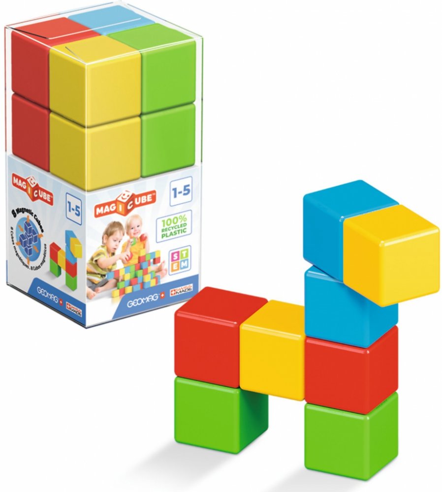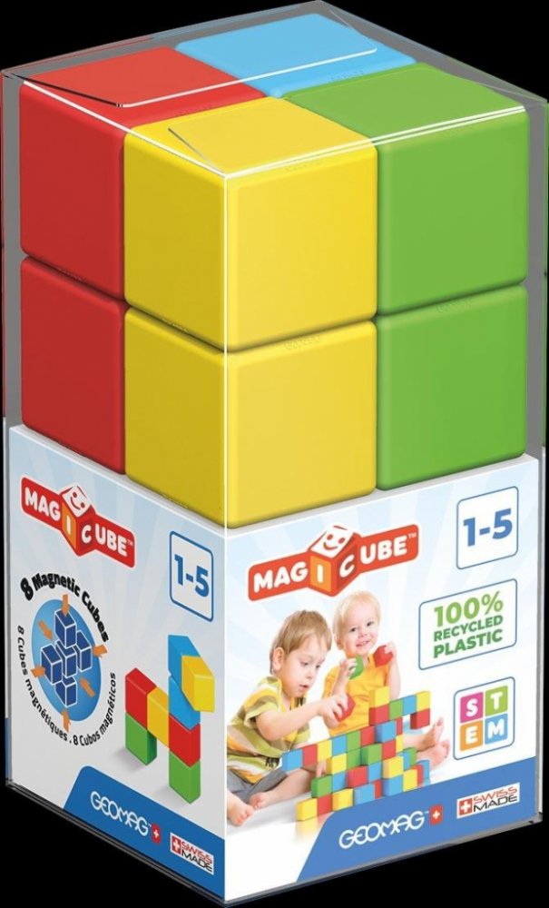 Vítejte ve světě Magicube Color Recycled Crystal od společnosti Geomag, kde mohou i ty nejmenší děti vytvářet rozmanité a originální stavby. Tato sada 8 barevných magnetických kostek je ideální pro malé ručičky - byla vytvořena pro batolata již od 1 roku. Přiložené prvky jsou navíc vyrobeny z recyklovaného plastu šetrného k životnímu prostředí.