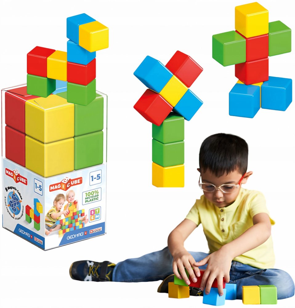 Barevné kostky obsažené v sadě přitahují oči nejmenších a vybízejí je ke hře. Pomocí nich se děti učí kreativitě a rozpoznávání barev a zároveň si osvojují manuální dovednosti. Magicube od společnosti Geomag navíc podporuje rozvoj vzdělávání v souladu s metodikou STEM.