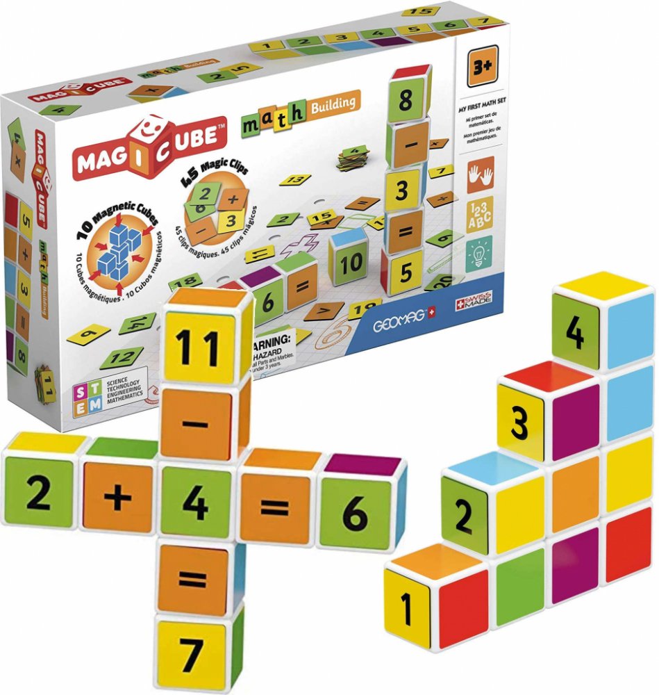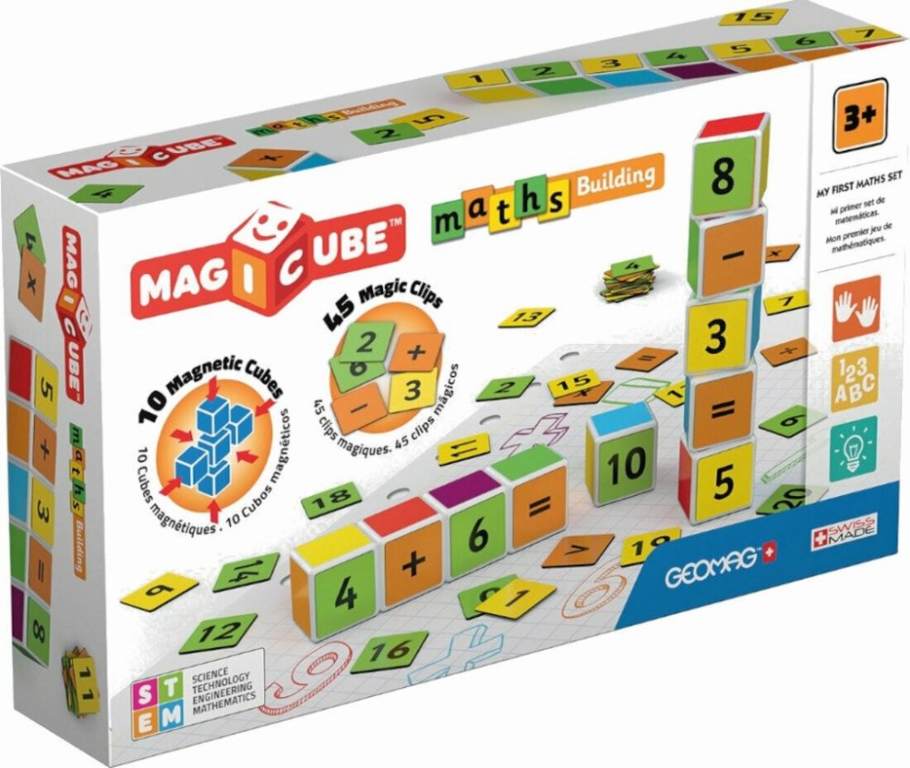 Pozorujte, jak se Vaše ratolest učí a začíná rozlišovat číslice, tvoří první výpočty a skládá je pomocí obrázků. Děti mají možnost vytvářet různé tvary, barevné kombinace a 3D struktury díky Geomag Magicubes, které jsou jedinečné v tom, že se přitahují a spojují ze všech stran. Sada obsahuje 10 magnetických kostiček a 45 magnetických klipů. Vyrobeno ve Švýcarsku. Kostky jsou vyrobeny ze 100% recyk...