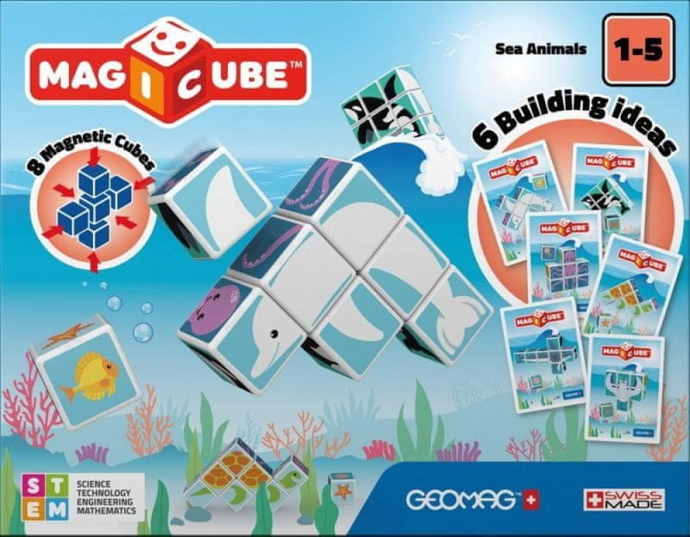 GEOMAG Magicube je barevná magnetická stavebnice umožňující postavit několik mořských zvířátek.