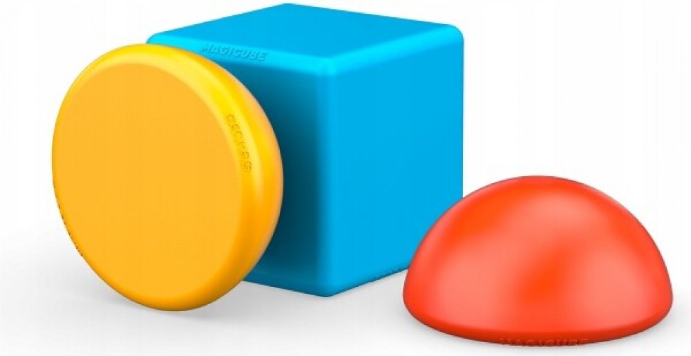Stavění věží baví i malá miminka. Obsahuje čtyři magnetické polokoule a čtyři magnetické krychličky v kombinaci osmi barev. Vhodné od 1 roku.