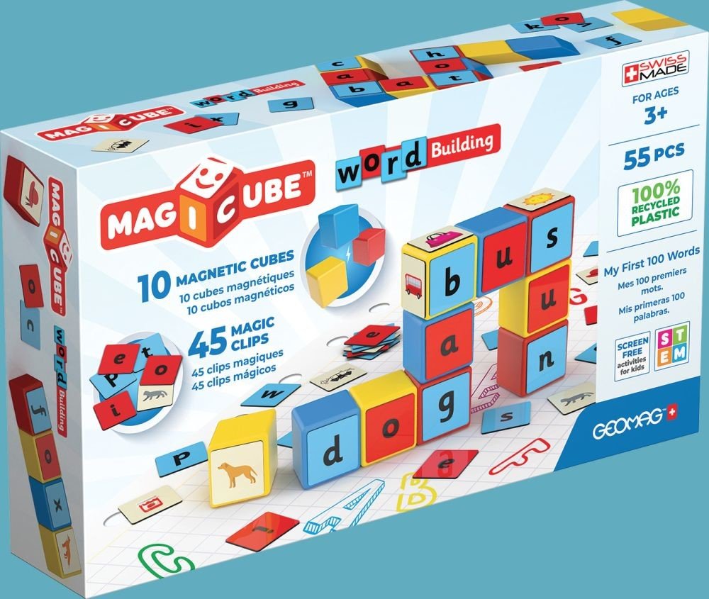 Baví vaše dítě hraní se stavebnicemi? Stavebnice Geomag rozvíjí nejen kreativitu, ale také zručnost nebo jemnou motoriku. Tato aktivita dítka zabaví na dlouhé chvíle, a navíc volný čas využijí efektivně. Uvnitř balení na vás bude čekat 55 dílků. K výrobě byl zvolen materiál, konkrétně plast a magnet. Magnetická stavebnice je pro děti atraktivní díky přitažlivé síle magnetů a provede je zákony magnetických jevů. Stavebnice Geomag je vhodná pro děti od 3 let. Hlavní přednosti stavebnice Magicube Word Building Recycled Clips 55 dílků Stavebnice přináší dětem spoustu zábavy Podpoří rozvoj dětské motoriky a představivosti Pro složení stavebnice je nutné poskládat 55 dílků Materiálem je plast a magnet Magnetická stavebnice Geomag pomůže proniknout do tajů fyziky Funguje na principu neviditelné síly, která drží kostky pohromadě Stavebnice Geomag je doporučena pro děti od 3 let Téma: abeceda