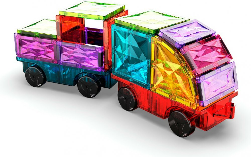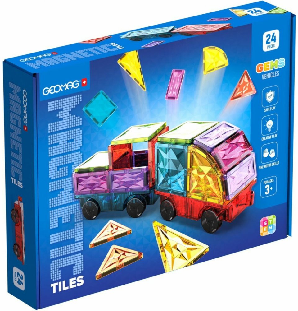 Dílky Geomag Magnetic Tiles Auta obsahují integrované magnety na všech stranách jednotlivých tvarů. Lze tak snadno vytvářet jakékoliv 2D obrazce nebo 3D struktury. Stavebnice rozvíjí manuální zručnost, kreativitu a fantazii, učí barvy, geometrické tvary, ale hlavně si s ní děti