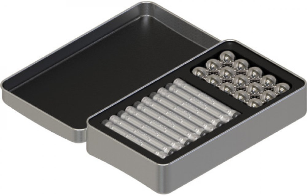 Obsahuje 30 stříbrných tyček se zesíleným magnetem a zvýrazněnou polaritou a 23 ocelových kuliček.