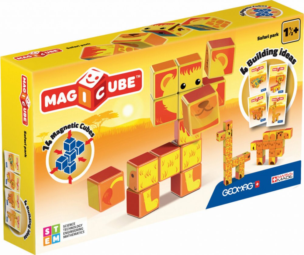 Magicube je plná kouzelných magnetických kostek umožňujících stavět věže, budovy i velké konstrukce snadno a rychle díky kvalitním magnetům bezpečně uschovaným uvnitř kostek. Děti se s GEOMAG Magicube učí formou hry, seznamují se se základními fyzikálními jevy, rozvíjejí svou představivost, prostorové vidění a konstrukční schopnosti. Jednoduché spojování kostek a jejich otáčení zvládnou i ty nejmenší děti. Na produktech GEOMAG Magicube naleznete označení STEM, což je vzdělávací koncept zaměřený na přírodní vědy, technologie, techniku a matematiku.