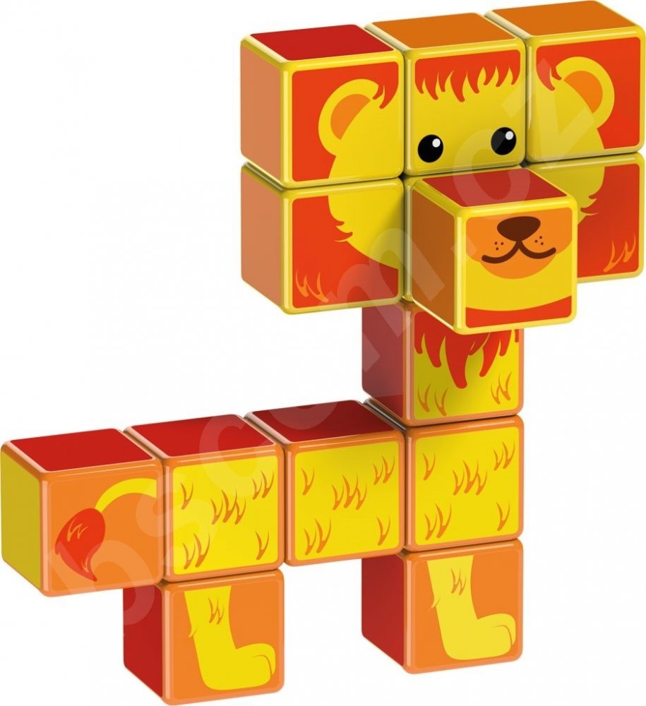 Obsahuje: 14 magnetických kostek, 2 oboustranné kartičky (4 tipy na skládání)