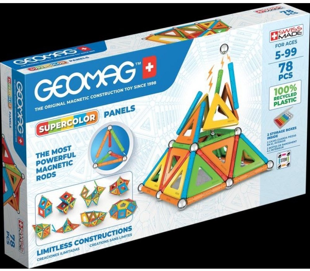 Jsou vaše děti nadšené pro různé stavebnice? Stavebnice Geomag je skvělou volbou pro rozvoj jemné motoriky a zručnosti. Tato aktivita dítka zabaví na dlouhé chvíle, a navíc volný čas využijí efektivně. Těšit se můžete na celkem 78 dílků. K její výrobě slouží plast, magnet a kov. Magnetická stavebnice nabízí dětem spoustu možností a pomůže jim proniknout do základů fyziky. Magnetická stavebnice děti nenápadně vzdělává formou hry a provede je zákony magnetických jevů. Má kvalitně zpracované díly, které k sobě přesně pasují. Stavebnice Geomag je vhodná pro děti od 5 let. Klíčové vlastnosti stavebnice Geomag - Supercolor recycled 78 pcs Stavebnice patří mezi tradiční hračky již od nepaměti Podpoří rozvoj dětské motoriky a představivosti Pro složení stavebnice je nutné poskládat 78 dílků Materiálem je plast, magnet a kov Magnetická stavebnice Geomag má edukativní charakter Vedle procvičení jemnosti prstů nabízí i pochopení magnetické síly Počítat lze s dokonalou kompatibilitou jednotlivých částí Stavebnice...