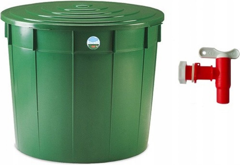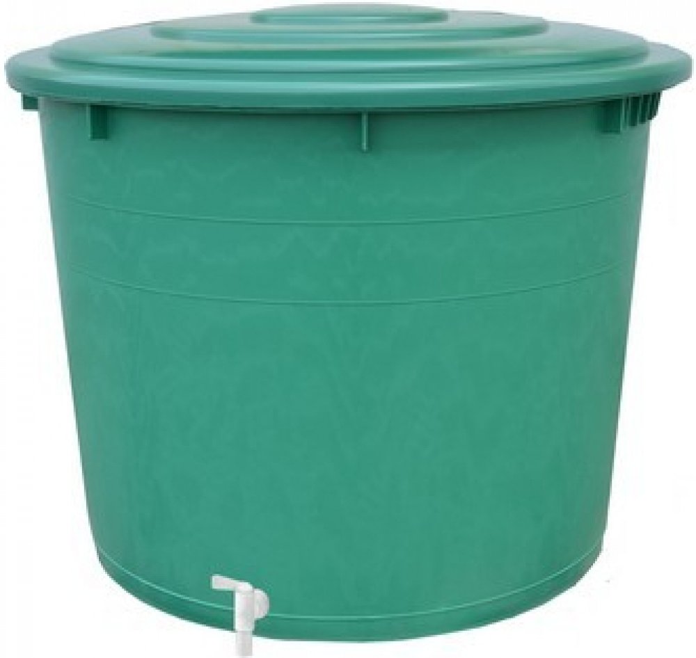 Plastový sud na dešťovou vodu komplet s víkem a výpustním kohoutkem pro snadné vypouštění vody.