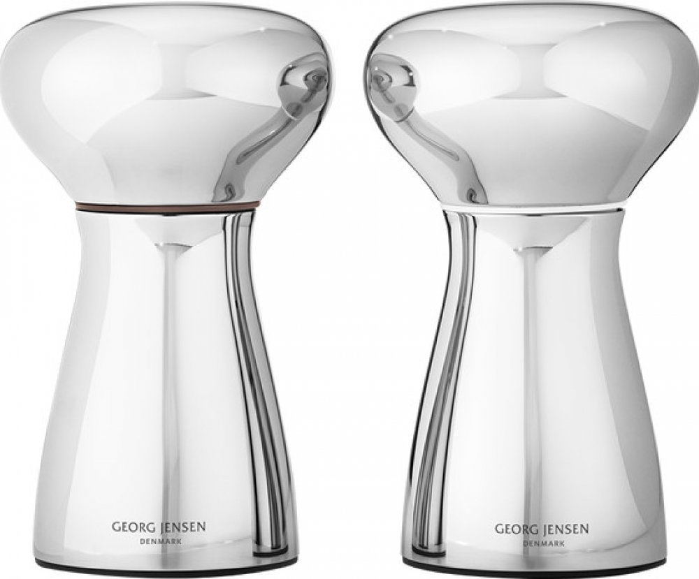 Mlýnek na sůl a pepř Alfredo jsou vyrobené z nerezové oceli a budou skvělým doplňkem vašeho jídelního stolu. Keramické mlýnky jsou vyrobeny nejmodernější a nejkvalitnější technologií "AllGrind - Ceramic Technology". Velikost mletých částic lze snadno nastavit otáčením šedého šroubu ve spodní části mlýnku. Značka GEORG JENSEN