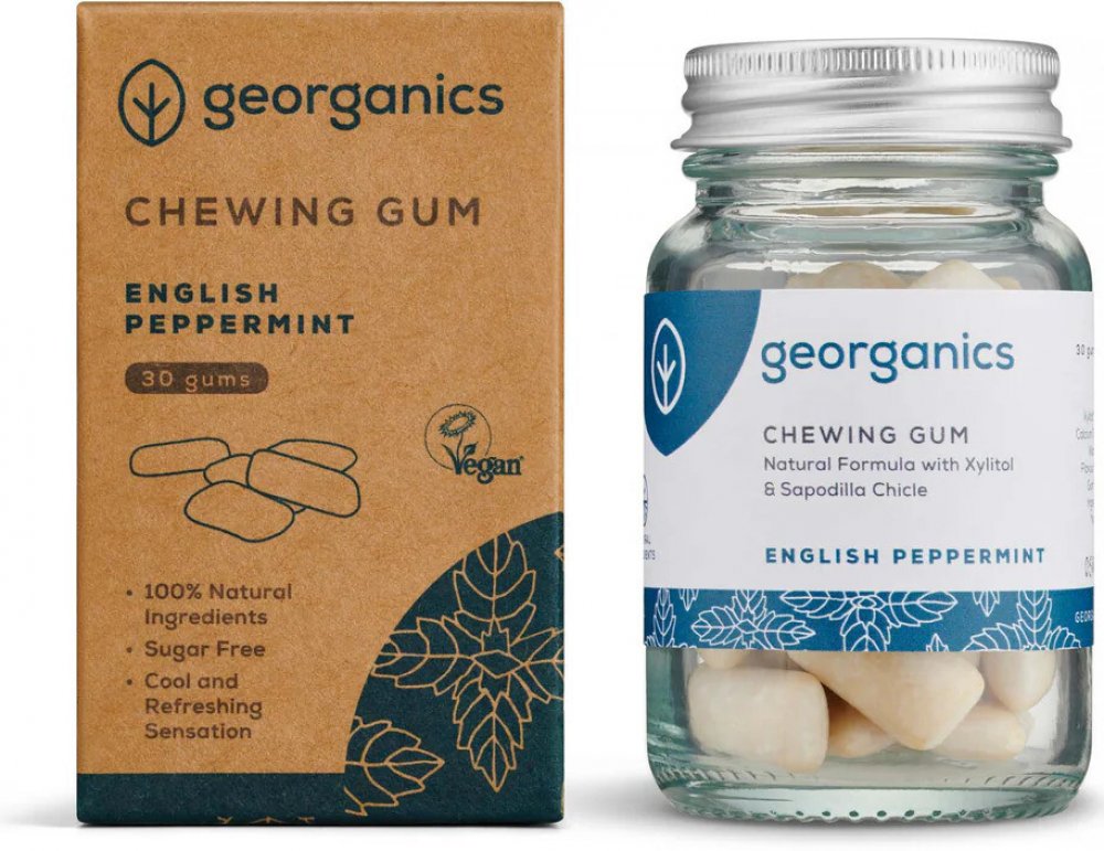 Georganic Mátové žvýkačky pro svěží dech jsou výjimečné složením, které splňuje non toxic kritéria. Čistě přírodní žvýkačky vyrobené z Chicle (jihoamerická pryskyřice) a arabské gumy ze stromů Sapodilla & Acacia. Mají příjemnou chuť máty peprné a osladí je přidaný xylitol (sladidlo z březové kůry). Pravidelným používáním dodají chladivý a osvěžující pocit v ústech a podpoří přirozený stav dásní díky eliminaci bakterií při žvýkání.