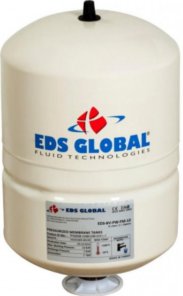 VLASTNOSTITlakové nádoby EDS jsou vyrobené z materiálů, které umožňují jejich použiti ve spojitosti se zásobováním pitnou vodou.Voda se tlakuje mezi polypropylenovou vložku a speciální dělící membránu ze zdravotně nezávadného polypropylenu. Takto je zabezpečena maximální hygienická nezávadnost pitné vody.Jediný vstup do zásobníkové nádrže je plnicí nerezový ventil, který splňuje všechny hygienické podmínky pro styk s pitnou vodou.Druhá část nádrže slouží jako protitlak a je natlakovaná podle výrobcem udávaných hodnot.Na natlakovaní je určený vzduchový ventil, který má dostatečnou zpětnou těsnící účinnost i při vysokých tlacích.Každá nádoba je před exportem otestovaná tlakovou zkouškou.