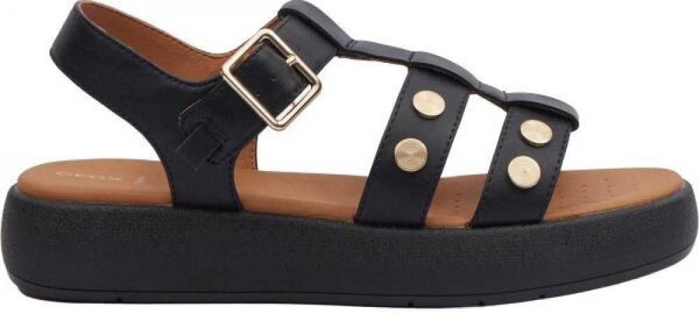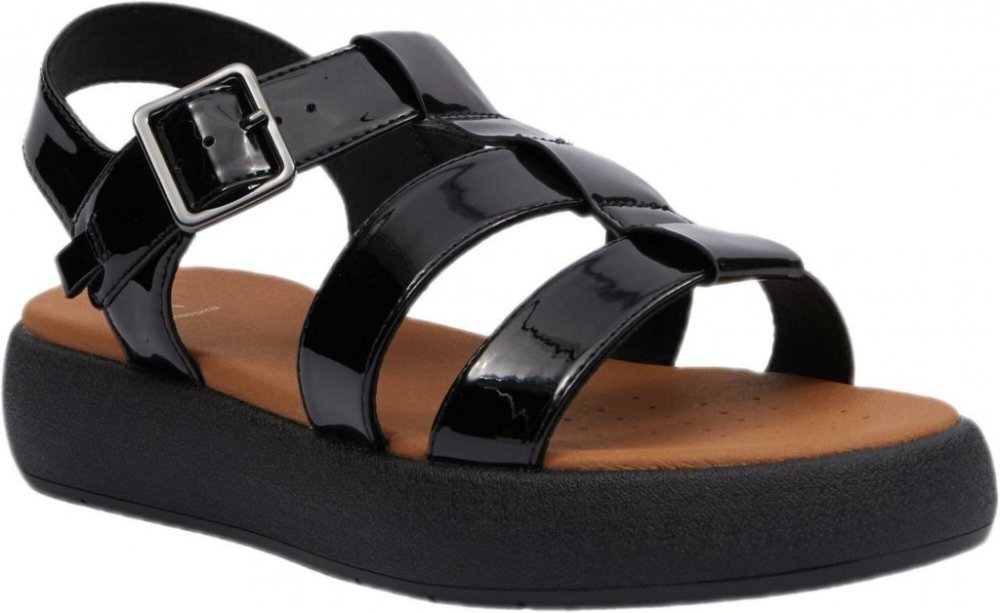 Obuv pro dámy Geox D CAMALEI představuje elegantní sandály s nadčasovým designem, které vynikají horizontálními pásky a nastavitelným řemínkem s kovovou přezkou. Technologie Respira™ zajišťuje optimální prodyšnost díky speciální membráně v podrážce, která odvádí vlhkost a zabraňuje pronikání vody. Pohodlná konstrukce a lesklý povrch dodávají sandálům sofistikovaný vzhled, zatímco měkká stélka zajišťuje komfort při každém kroku. Tyto sandály jsou ideální pro letní dny, kdy hledáte kombinaci stylu a funkčnosti, a skvěle doplní váš šatník.