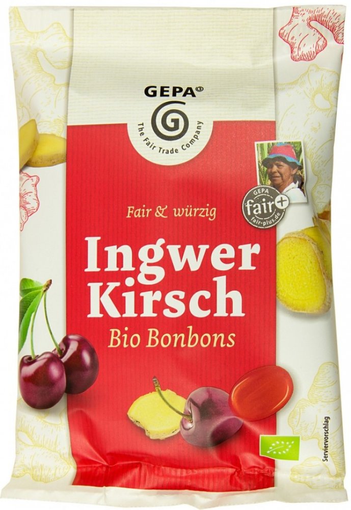 Zázvorovo-třešňové bonbony obohacují oblíbenou řadu GEPA bonbónů o novou příchuť s bio ingrediencemi z fair trade. Jemná kořenitost zázvoru a příjemně ovocný třešňový tón se vzájemně doplňují a vytvářejí velmi zvláštní organický bonbónový výtvor. Jemná sladkost našich zázvorových třešňových bonbónů je zajištěna aromatickým surovým třtinovým cukrem od malých farmářů v Paraguayi. Jsou součástí družstva Manduvirá a kromě zeleniny a ovoce pěstují především cukrovou třtinu. Férový bonus, který za to dostávají, jim umožnil postavit vlastní cukrovar a vytvořit nová pracovní místa.