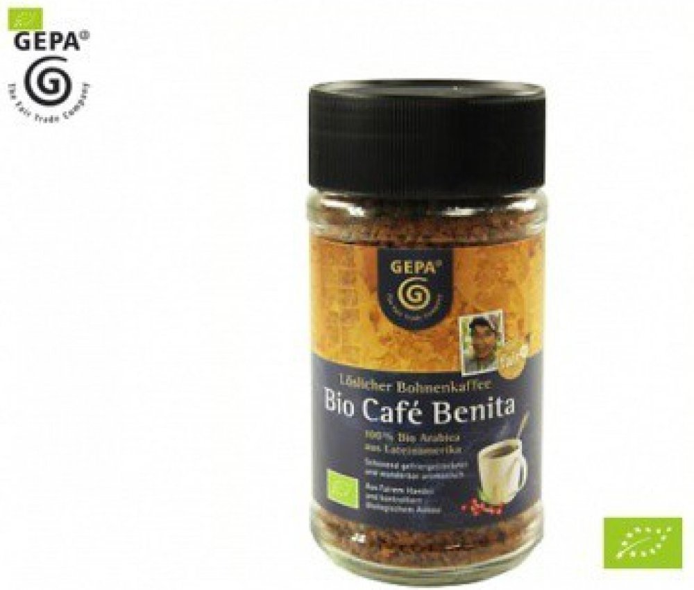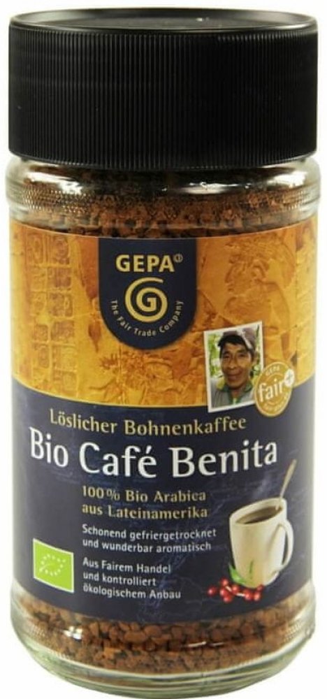 Káva Gepa svou neodolatelnou vůní a lahodnou chutí potěší každého, kdo si bez horkého šálku neumí představit den. Jedná se o 100% Arabiku s náležitě výraznou vůní a chutí. Zemí sklizně je Bolívie, Honduras, Peru a Mexiko, za pražením pak stojí Německo. Zajímavé vlastnosti kávy Gepa Instantní káva Fairtrade BIO Benita 100% Arabica 100 g Instantní káva je během okamžiku připravena Čistá Arabika s nízším obsahem kofeinu a bohatou chutí Původ kávy Gepa: Bolívie, Honduras, Peru a Mexiko Místo pražení: Německo