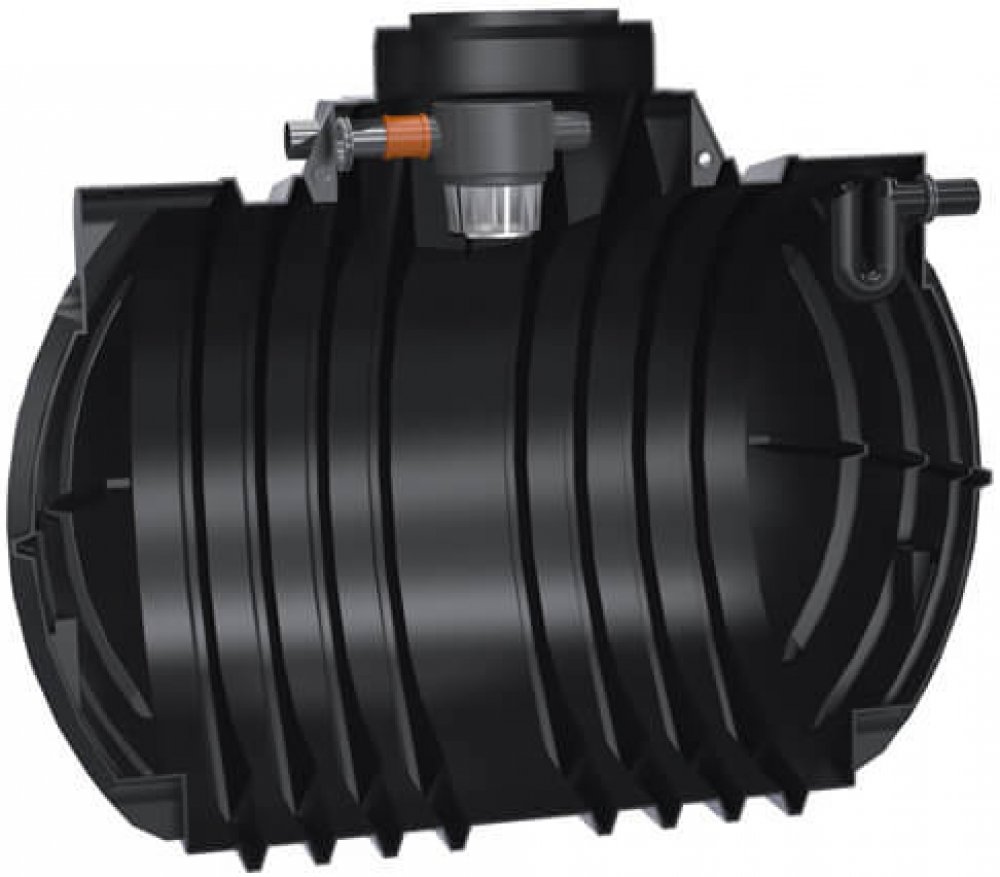 Předmontovaná retenční technologie - dešťové nádrže připravené k připojení včetně zahradního filtru, nouzového přepadu a retenčního ventilu