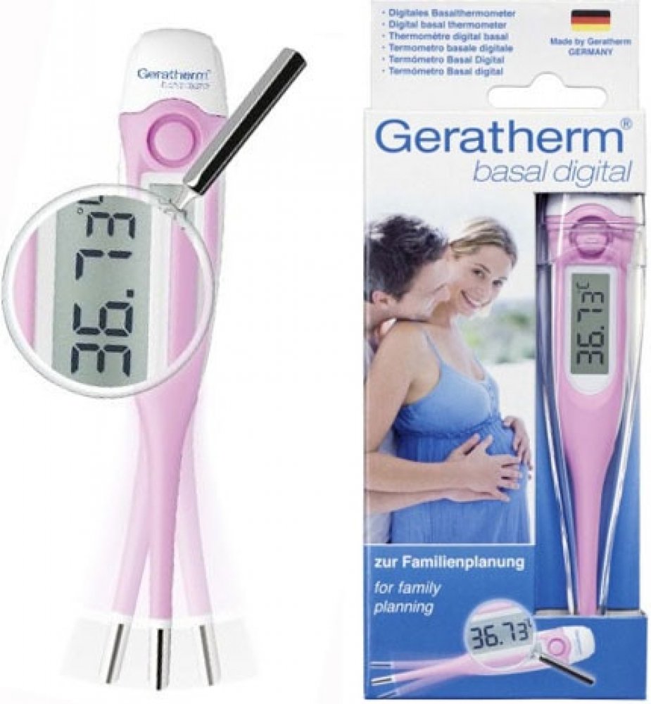 Geratherm Bazální digitální teploměr je vhodným pomocníkem k přirozenému plánování rodiny. Pomocí teploměru může žena pravidelně zjišťovat své plodné a neplodné dny. Navíc jej lze samozřejmě používat i ke klasickému měření teploty.