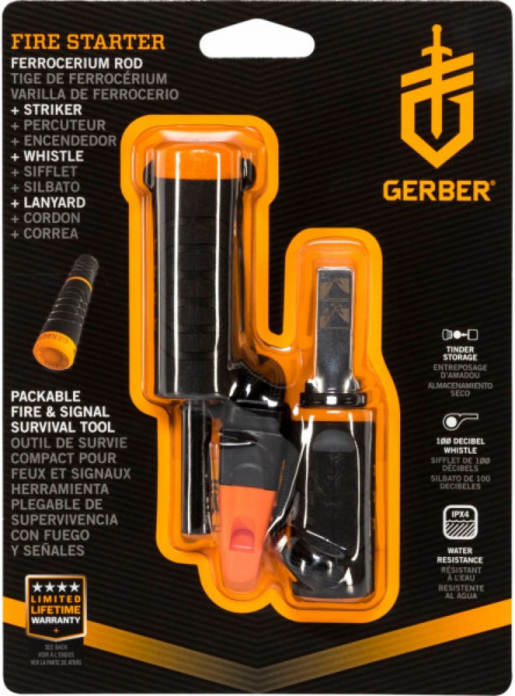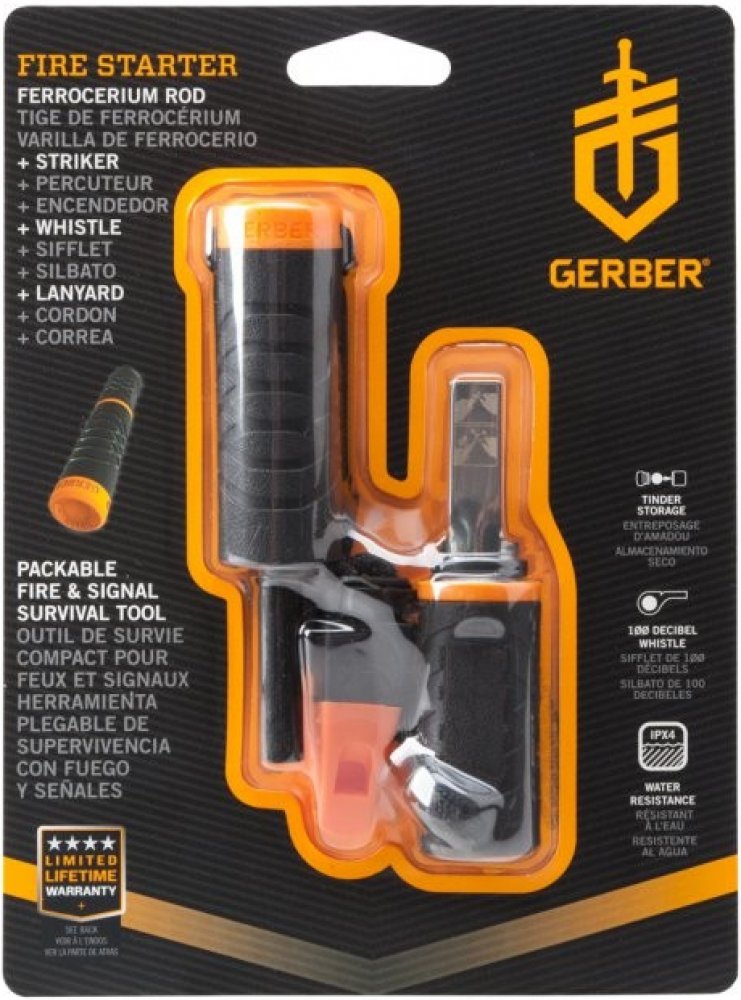 Vytvorí nespočetné množstvo iskier o teplote až 3000 ° C. V jeho útrobách nájdete priestor pre uchovanie zapaľovače alebo akéhokoľvek materiálu na podpaľovanie. Vodotesná konštrukcia udržuje podpaľovač, ale hlavne "skladovacie oddelenia" v suchu a po ruke. Podpaľovač funguje aj keď je vlhký, čo je obrovská výhoda oproti šírkam alebo zapaľovačom. Podpaľovač Fire Starter zo série pre prežitie Bear Grylls Survival Series je pomôcka, ktorá sa Vám bude hodiť nielen v divočine. Rozhodne by ho mala obsahovať každá krabička poslednej záchrany.