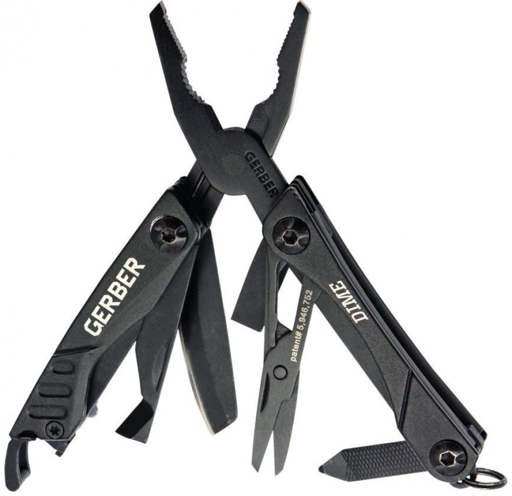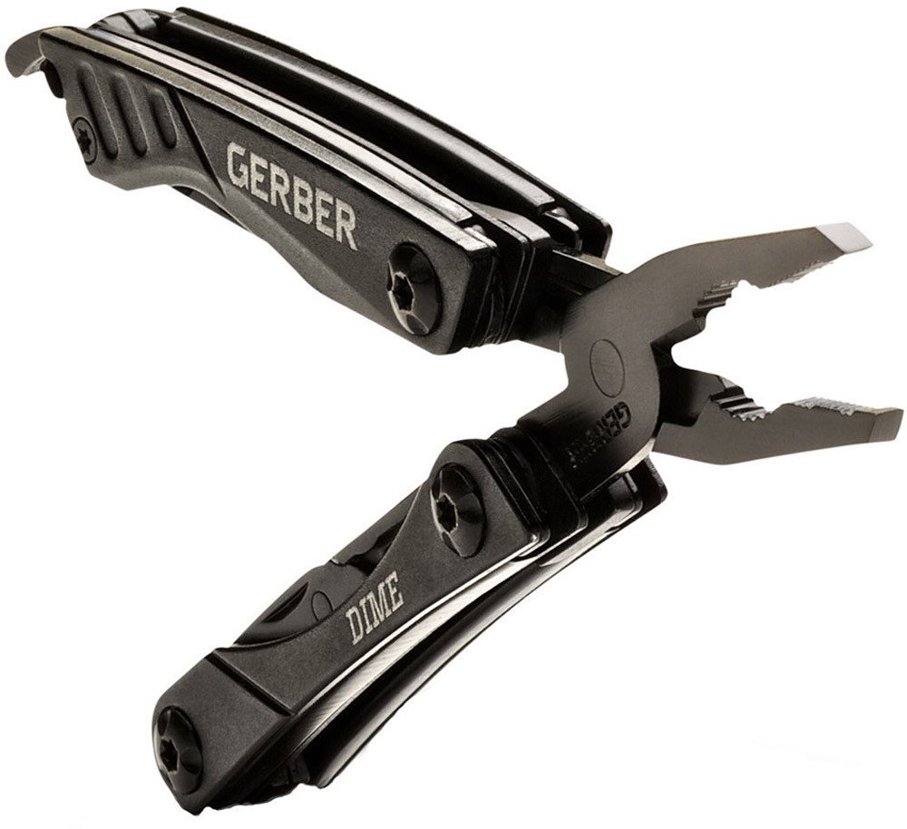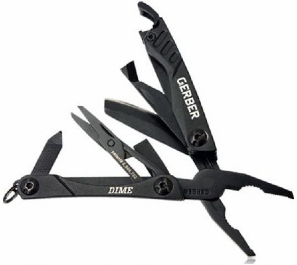 Černé multifunkční kleště Gerber Dime s otvírákem, šroubováky, noži i nůžkami. To vše v tak kompaktním balení, že se vám nářaďové kleště Dime vlezou na kroužek ke klíčům.