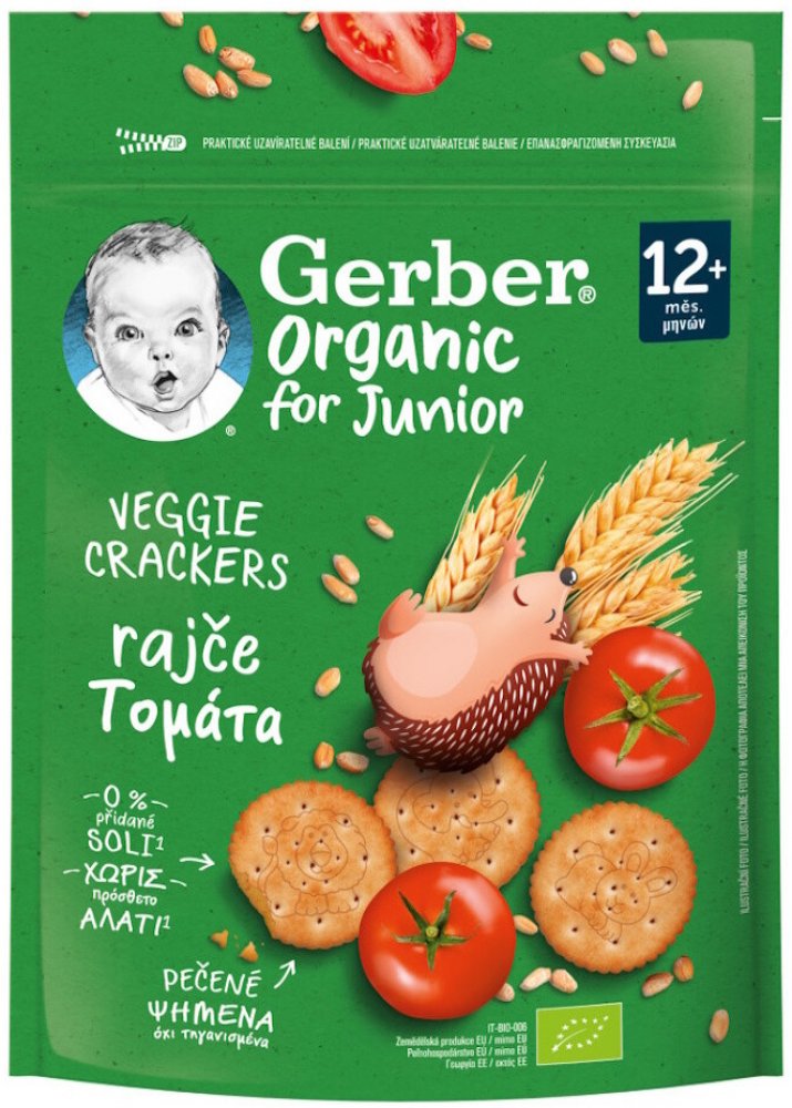 Hledáte tu pravou křupavou dobrotu pro svého malého objevitele? GERBER Organic krekry s rajčaty představují lahodnou svačinku speciálně navrženou pro mlsouny starší 12 měsíců. Křupavá kolečka jsou ozdobena hravými motivy zvířátek, což z nich dělá zábavnou svačinku, kterou si váš malý skřítek prostě zamiluje. Lahodné dětské krekry jsou pečené v troubě, nikoli smažené, což jim dodává jedinečnou křupavost. Nenajdete v nich ani zrníčko přidané soli*, navíc jsou bez barviv a konzervačních látek*.