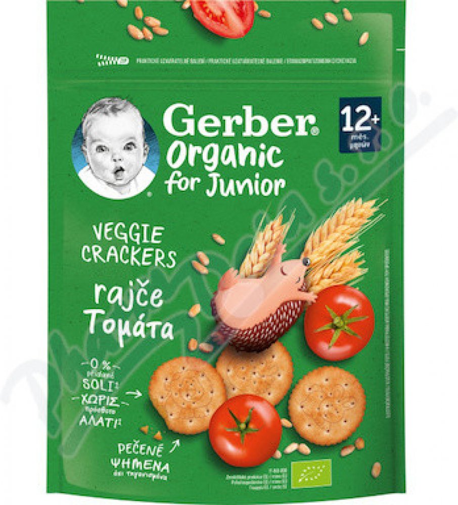 GERBER Organic krekry s rajčaty 100 g. BIO krekry s rajčaty, pečené. Určeno od 12 měsíců.
