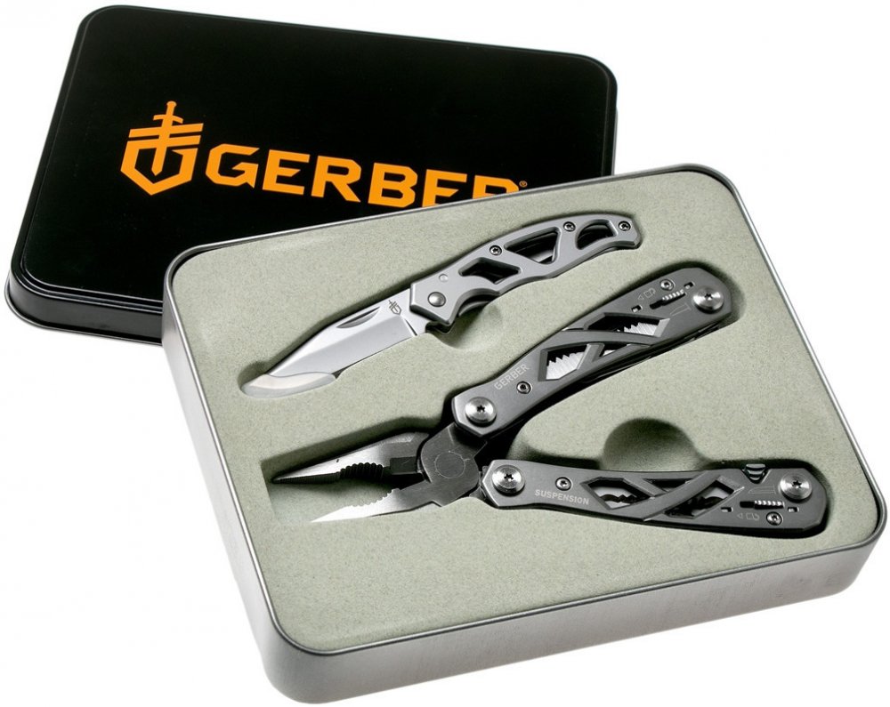 Tato sada značky Gerber potěší každého domácího kutila. Dárková krabička v sobě ukrývá klasický Gerber multitool Suspension NXT a nůž pro každodenní používání Mini Paraframe. Multitool Suspension NXT patří mezi nejprodávanější kousek od značky Gerber pro profesionální použití. Nová verze nazvaná Suspension Next je zaměřená spíše na každodenní hobby použití. Užší design je vhodnější pro EDC (= Ever...