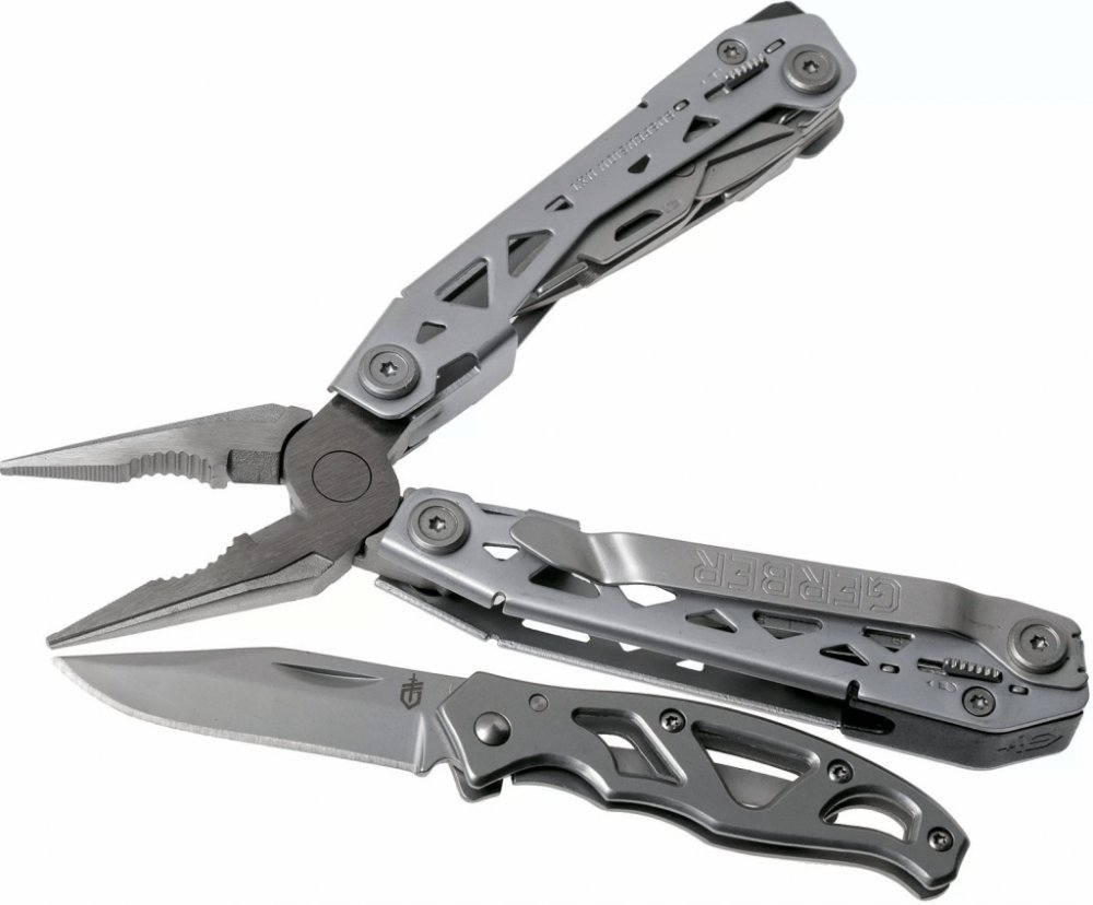 V rámci této zvláštní dárkové sady je zahrnut i nástroj Gerber Paraframe. Ideální dárek pro milovníky praktických nástrojů! Čepel vyrobená z nerezové oceli se otevírá kolíkem na čepeli a v otevřené pozici ji drží pojistka framelock. Odlehčená rukojeť je vyrobena z nerezové oceli. Nůž je vybaven klipem pro nošení v kapse.