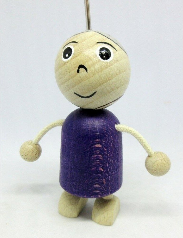 Dřevěná loutka babičky ke knižnímu loutkovému divadlu. Velikost loutky s vodícím drátem 21 cm. Loutka má fialové tělíčko a ručně malovaný obličej. Každá loutka je originál. Loutku využijete např. v pohádce O Červené karkulce, může si však zahrát i Jezinku ve Smolíčkovi. Dřevěná loutka bez vodících nití je vhodná pro nejmenší děti. Nechte je objevovat svět fantazie a loutkových divadel. Česká spole...