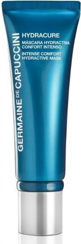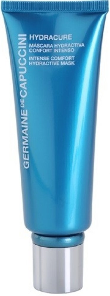 Germaine de Capuccini HYDRACURE Hydractive Intense Comfort Mask je pleťová maska vytvořena zejména pro tu nejsušší a dehydratovanou pleť. Okamžitě zvláčňuje, hydratuje a přináší pocit úlevy naplé, přesušené pokožce. Osahuje kyselinu hyaluronovou, japonskou termální vodu, aktivní složky, ovocnou vodu na bázi přírodních extraktů jalovce, konvalinky a mimózy. Zanechává tak pokožku hydratovanou, jemnou a zářivou..