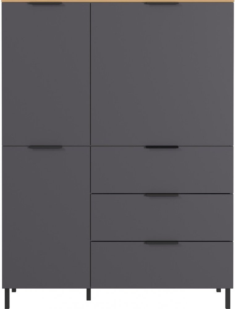 Komoda California bude stylovou ozdobou každého moderního interiéru. Korpus v grafitově šedé barvě z dřevotřísky je potažen melaminovou pryskyřicí, která komodě dodává osobitý vzhled. Minimalistický design komody podtrhuje vrchní deska v dekoru dubu. Výhodou je možnost zvolit si ze dvou druhů podnože – v balení najdete vyšší i nižší provedení. Sami si tak vyberete, jaká bude vašemu interiéru více ...