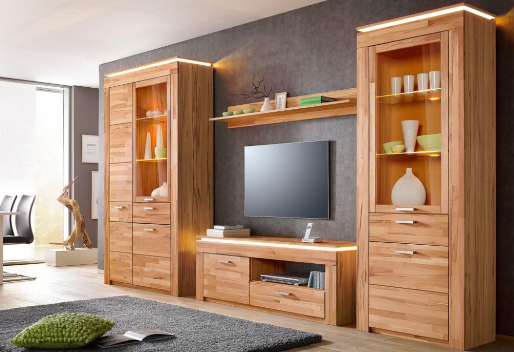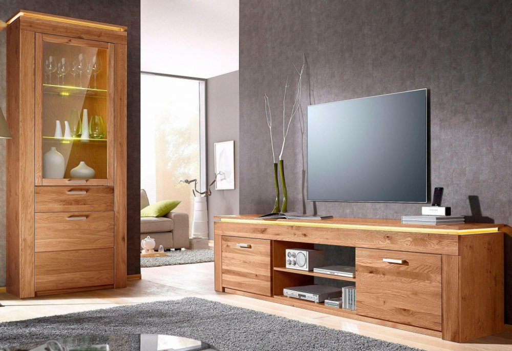 Moderní obývací stěna Lyon v provedení Divoký dub MASIV obsahuje: