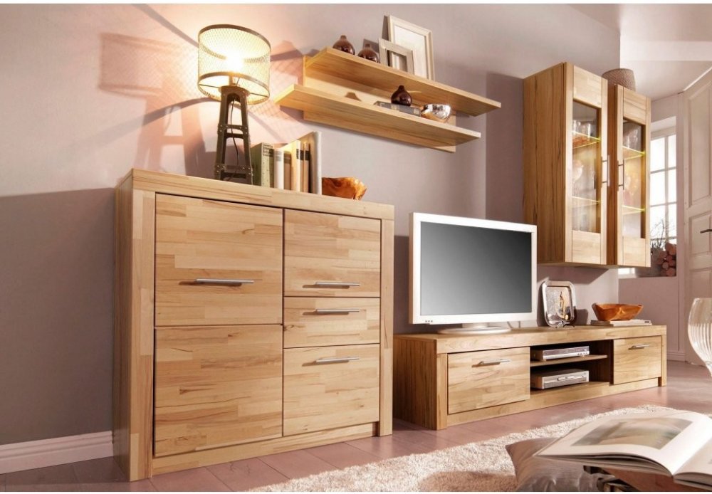 Moderní obývací stěna Stefi v provedení jádrový buk - MASIV obsahuje:
