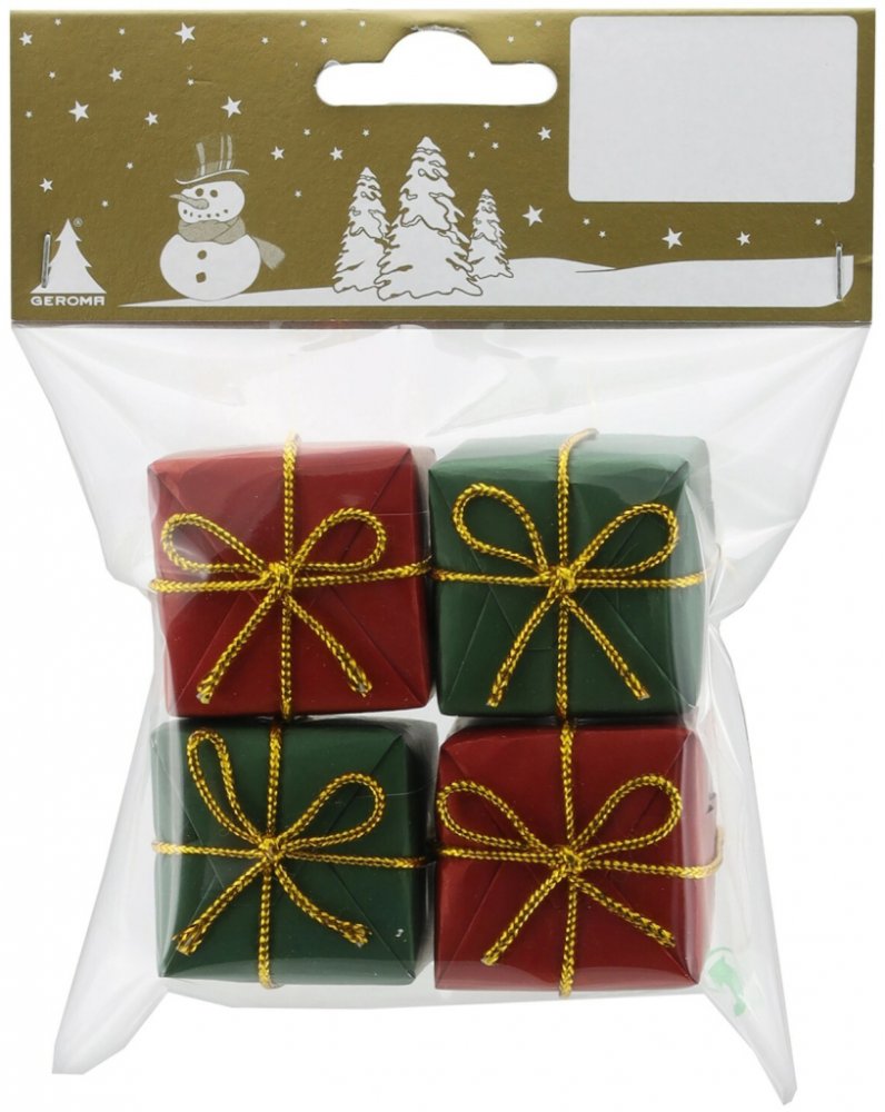 GEROMA Vánoční dekorace dárečky papír polystyren zeleno-červené 3,2x3,2 cm, 4 ks