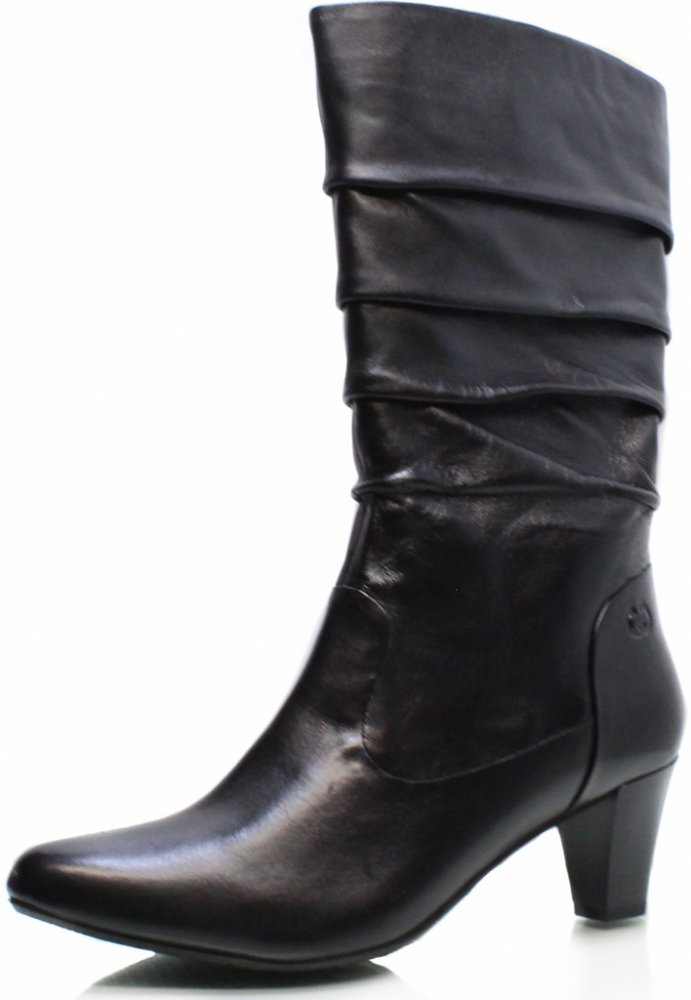 Dámské kozačky Gerry Weber na pohodlném podpatku. Kombinace hladké kůže s nařasením dodává botám šmrnc. Díky zipu po straně jsou snadno prozutelné. Podešev:Podešev obuvi je s protiskluzovým vzorkem vyrobená ze syntetického materiálu. Podpatek vysoký 5 cm. Svršek:Svršek obuvi je vyrobený z koženého materiálu. Barva svršku je černá. Podšívka:Podšívka je vyrobená z textilního materiálu. Stélka:Stélka je vyrobená z textilního materiálu. Šířka:G Svršek: kůže Podšívka: textil Stélka: textil Podešev: syntetika Šířka: g