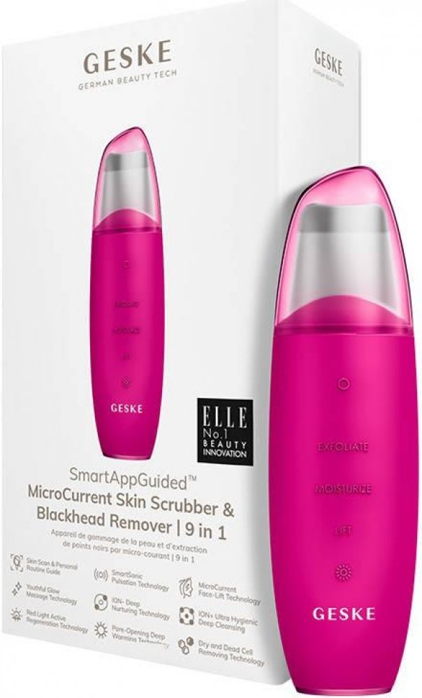 GESKE Microcurrent Skin Scrubber&Blackhead Remover 9in1 ultrazvuková špachtle magenta