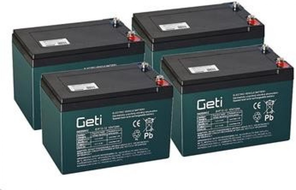 Sada bezúdržbových akumulátorů GETI 48V 12Ah (4x12V) určená pro pohon elektromotoru.