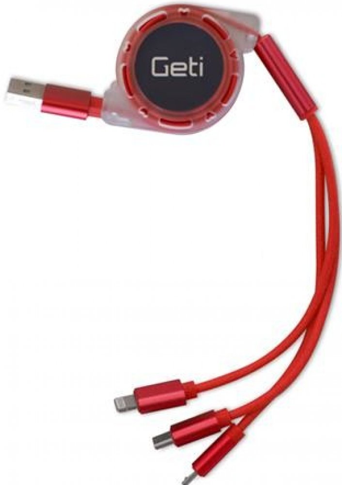 Kabel Geti GCU 02 USB 3v1 červený samonavíjecí