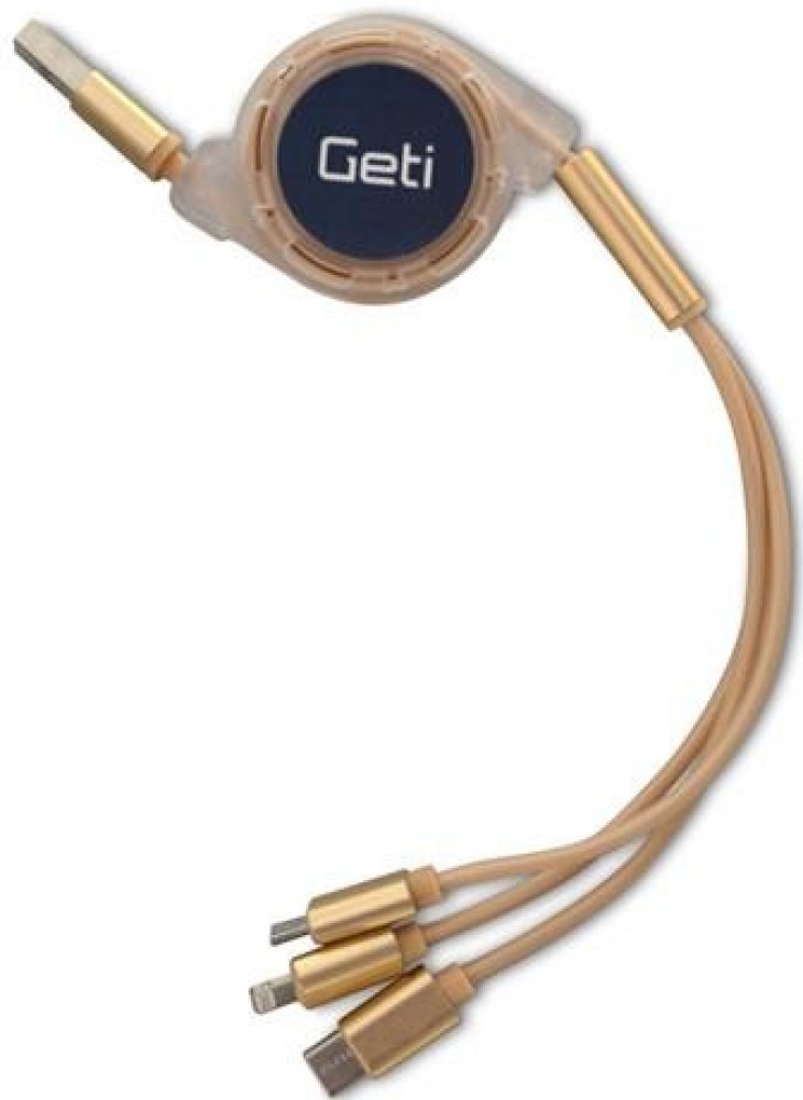 Kabel Geti GCU 05 USB 3v1 zlatý samonavíjecí