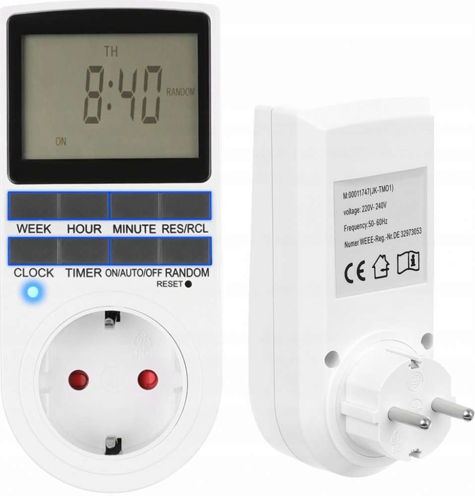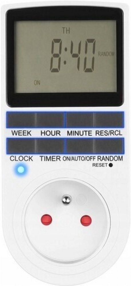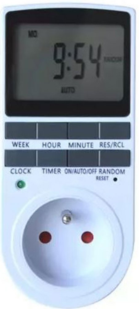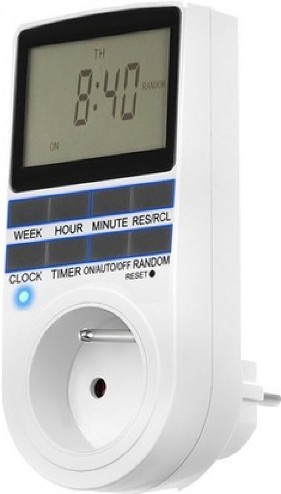 - ČASOVÝ SPÍNAČ - toto mimořádně praktické zařízení vám jeden takový umožní plnou kontrolu nad elektrickými zařízeními ve vaší domácnosti. Díky němu zautomatizujete mnoho denních činností, fr na které často zapomínáte, např. při osvětlení terárií a akvárií, zhasínání lampy, vypínání topení, klimatizace nebo kotle . Můžete k němu připojit nabíječku telefonu nebo vánoční osvětlení. Programátor v předem určený čas vypne nebo vypne zařízení k němu připojené. Náš programátor má schopnost spravovat zapínací a vypínací sekvence po dobu jednoho týdne.