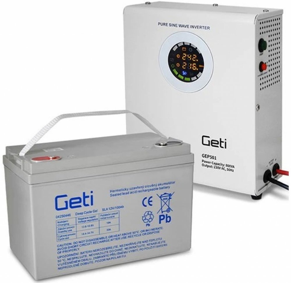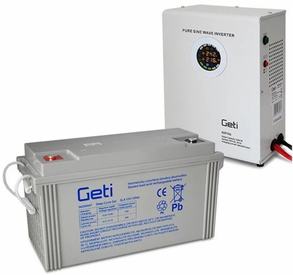 Nouzový napájecí systém GETI (EPS - Emergency Power Supply) je zařízení, které zajišťuje zdroj střídavého napětí v případě výpadku elektrické sítě. Nouzový napájecí systém můžete použít jako záložní zdroj pro různá čerpadla, automatické kotle, podavače, nouzové osvětlení, kamerové systémy a další. V normálním režimu je připojené zařízení napájeno přímo ze sítě a při výpadku se nouzový napájecí systém automaticky přepne do režimu měniče. Připojené zařízení je pak napájeno z připojené baterie. V případě, že nedojde k obnovení dodávek elektrické energie, může dojít k vypnutí nouzového napájecího sytému v momentě, kdy napětí připojené baterie klesne na hodnotu okolo 10,2V ± 0,3V. Je to z důvodu ochrany baterie před hlubokým vybitím a následným poškozením. EPS je vybaven přehledným barevným displejem, měničem napětí s čistým Sinusem založeném na toroidním transformátoru a rychlým 32-bit procesorem.Upozornění: Instalaci sestavy musí vždy provádět jen osoba s příslušnou odbornou kvalifikací! Kontakty připojené baterie musí být vhodně chráněny proti: dotyku osob, cizích těles, kontaktu s jinými částmi systému nebo zkratu. Popis produktu:- měnič, UPS, AVR a nabíječka v jednom přístroji- přehledný barevný displej- vysoká účinnost díky konstrukci s toroidním transformátorem- vysoký nabíjecí proud- ochrana proti přetížení, zkratu, přebití a přepolování.Technické parametry:- typ záložních baterií: AGM, GEL- napětí záložních baterií: 12V DC- jmenovitá kapacita: 800VA- jmenovitý výkon: 500W- transformátor: toroid- vstupní napětí: 230 V AC - 50Hz- výstupní napětí: 220V AC ± 3% - 50Hz / čistá sinusovka- nabíjecí proud: 10A/ 15A/ 20A volitelně- nabíjecí napětí: 13,6V ± 0,3V- limit nízkého napětí baterie: 10,9V ± 0,3V- ochrana pro odpojení nízkého napětí baterie: 10,2V ± 0,3V- doba odezvy: - chlazení: Ano- provozní teplota: 0 ~ 40°C- relativní vlhkost: 10% ~ 90%- skladovací teplota: -15°~ 45°C- délka kabelu k baterii: 2 x 75cm, M8- rozměr: 210x253x102 mm- váha: 4,5kgGelový typ olověného akumulátoru Geti je vhodný zejména do solárních a větrných energetických systémů a karavanů, ale i jako náhrada za baterie pro záložní systémy UPS, záložní zdroje, aplikace EZS, EPS, telekomunikace, výstražná mobilní a signalizační zařízení apod. Jedná se o bezúdržbový, hermeticky uzavřený akumulátor, což umožňuje libovolnou pracovní polohu. Technické parametry: - technologie výroby: VRLA (valve regulated lead acid) - ventilem řízené olověné akumulátory- typ: GEL- napětí: 12 V - kapacita: 120 Ah - rozměry: 407 x 177 x 222 mm - celková výška (s koncovkami): 225 mm - hmotnost: cca 35 kg - vnitřní odpor (plně nabitá baterie): 4 mΩ - samovybíjecí proces Balení: 1ks záložního zdroje GETI GEP501 + olověná baterie 120AhHmotnost kartonu: 39kg