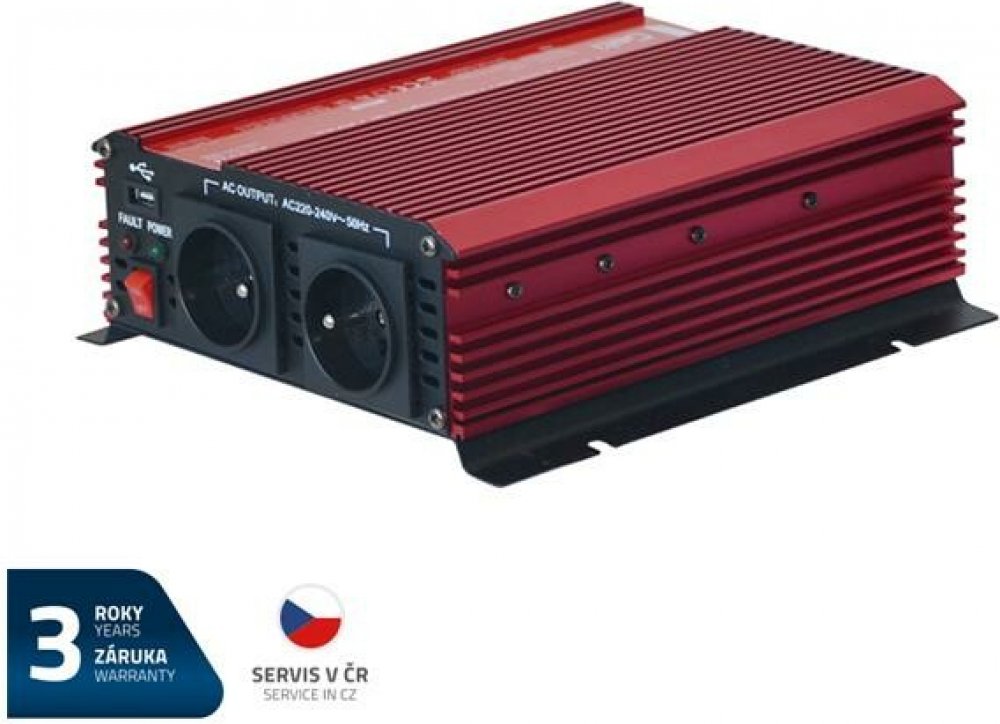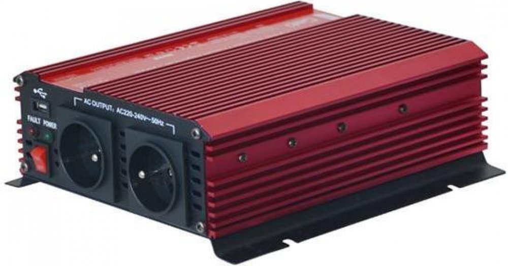 Invertor - Měnič vytváří ze stejnosměrného napětí 12V střídavé napětí 230V. To umožňuje připojení nejrůznějších spotřebičů 230V ke zdroji napětí jako např. v autě, na člunu, u solárních zařízení na chatách nebo při kempování. Ideální pro připojení digitální kamery, mobilního telefonu, notebooku, tiskárny, lampy, CD/DVD přehrávače, rádia atd s maximálním příkonem do 1000W.