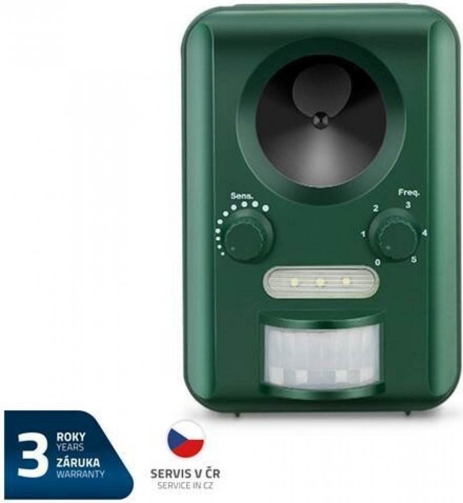 Solární odpuzovač GETI GPR150 je ideální způsob, jak zbavit Vaši zahradu nezvaných zvířecích návštěvníků. Je kombinací velmi účinného detekčního systému, který při detekci pohybu v dosahu čidla, spouští silné ultrazvukové vlny a ostré světlo na principu stroboskopu. Vyplaší tak nechtěné zvířecí návštěvníky z Vaší zahrady. Odpuzovač je ekologický, nemá vliv na zdraví člověka.