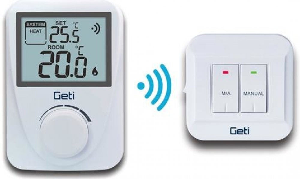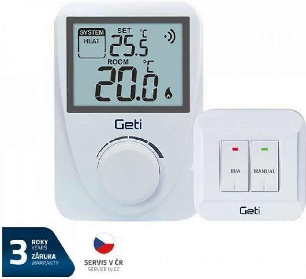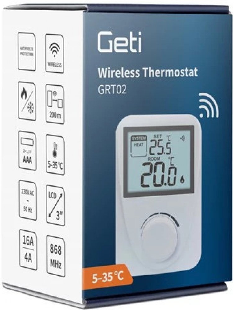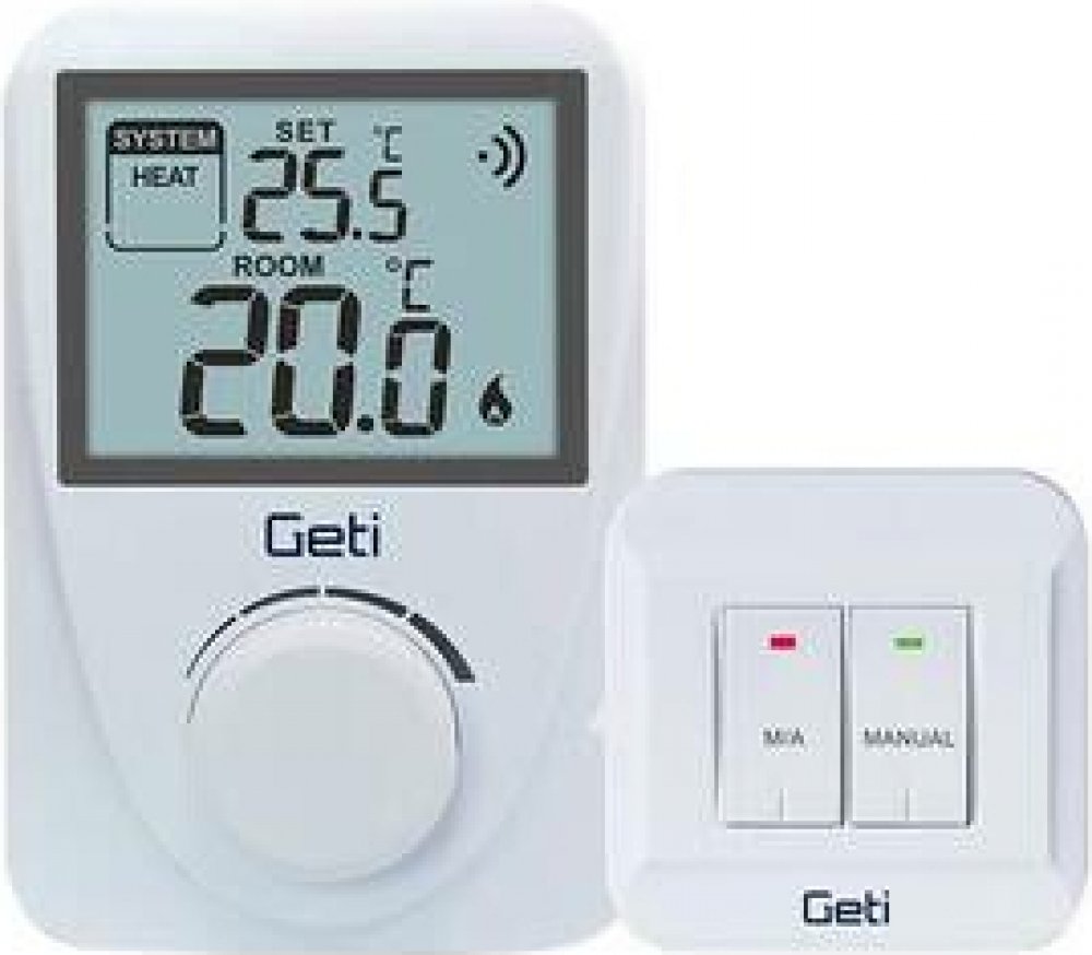 Bezdrátový pokojový termostat GETI GRT02 hlídá ideální teplotu a reguluje topicí systém nebo klimatizaci ve dne i v noci. Výhodou je jednoduché ovládání a podsvícený displej s velkými číslicemi a informacemi o aktuální požadované teplotě. Díky bezdrátovému provedení a dosahu až 200 m Vám umožní změnit referenční místnost podle potřeby. Termostat disponuje ochranou proti zamrznutí, díky níž jej můž...