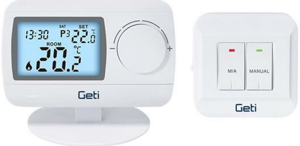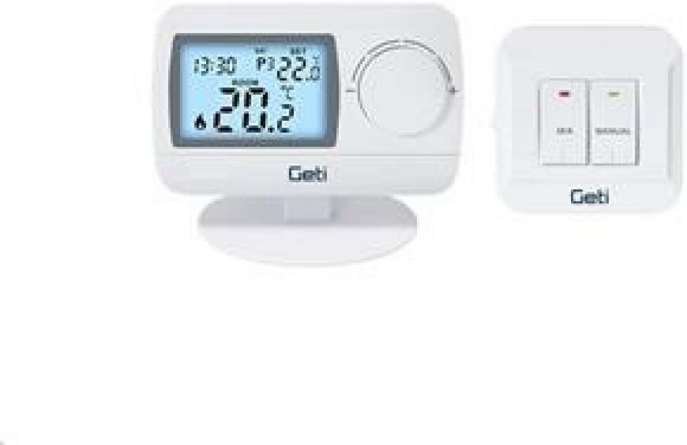 GRT03 je bezdrátový programovatelný termostat pro přesnou regulaci vytápění i chlazení v bytech, domech i kancelářích. Díky bezdrátovému provedení ho můžete snadno umístit tam, kde se vám hodí, bez zásahu do elektroinstalace. Nabízí týdenní plán s až 6 teplotními změnami denně, takže přizpůsobí topení či chlazení vašemu dennímu režimu. Velký displej s jasným bílým podsvícením zajišťuje perfektní čitelnost i za zhoršených světelných podmínek. Ochrana proti zamrznutí chrání vaši domácnost při nízkých teplotách a indikace vybité baterie vás včas upozorní na výměnu. Teplotu lze nastavovat v rozmezí 5–40 °C po 0,5 °C. Samotný termostat napájí 2× AA baterie (součást balení), přijímací jednotka se napájí ze sítě 230 V AC. Stabilní přenos na frekvenci 868 MHz funguje až na vzdálenost 50 m v otevřeném prostoru. Spínací jednotka zvládne maximální odporovou zátěž 8 A (230 V AC) a indukční zátěž 2 A. Kompaktní rozměry (termostat 119 × 80 × 31 mm, přijímač 86 × 86 × 28 mm) usnadňují instalaci i umístění v interiéru.