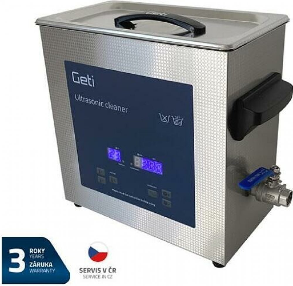 Ultrazvuková čistička Geti GUC 06B s ohřevem vyčistí vše od povrchových nečistot a to jen pomocí vody a vibrací, které vytváří ultrazvuk. Ultrazvukové čištění je založeno na kavitačním efektu způsobeném vysokofrekvenčním vibračním signálem ultrazvukových vln v tekutině. Vytváří se mikroskopické bubliny, které prudce implodují a způsobují kavitaci, která způsobuje intenzivní čištění na povrchu čištěného předmětu. Bubliny jsou dostatečně malé, aby pronikly mikroskopickými štěrbinami a tím důkladně a důsledně čistily předmět. Používá se k čištění široké škály nástrojů a mechanických součástí.