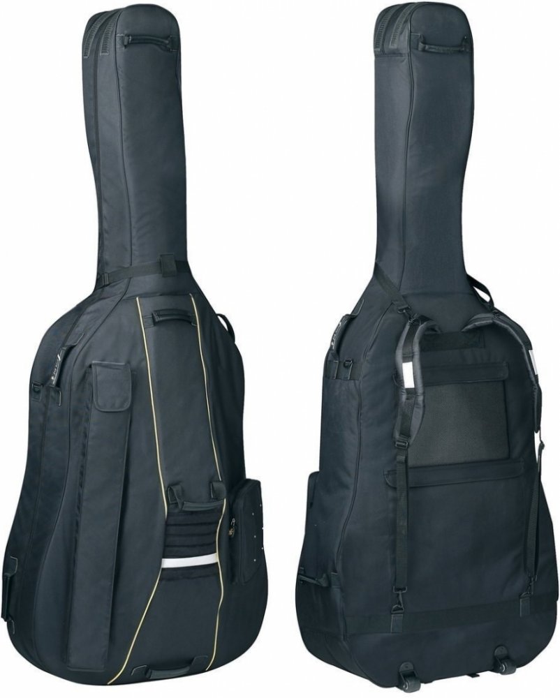 obal pro kontrabas, 25 mm Tricot polstrování, dvě kolečka pro lehčí transport, vnější látka-pevná a voděodolná, kapsa pro smyčec, také vhodná pro smyčcové pouzdro, veliká kapsa pro noty a struny, extra kapsa pro příslušenství, popruhová garnitura, vypodložená a nastavitelná, 8 komfortních rukojetí, reflektorový bezpečnostní proužek, hmotnost 6.3 kg, různé velikosti