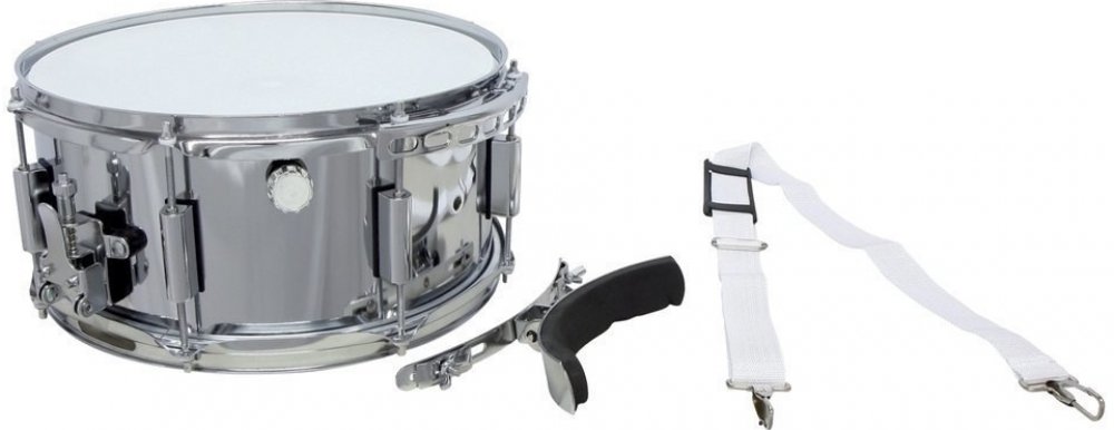 Pochodový snare kovový 14"x6,5" , držák na koleno + popruh součástí balení, 8 napínacích šroubů