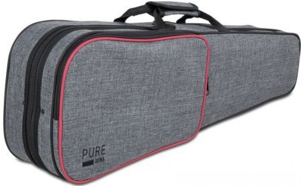 Tvarované pouzdro z tvrzeného polystyrenu, potažené pevnou nepromokavou látkou, nízká hmotnost, popruhy na záda, pevný zip, velká kapsa na noty. Uchycení na dva smyčce. Přihrádka na příslušenství. Pro housle 4/4 velikosti. Decentní šedá barva.