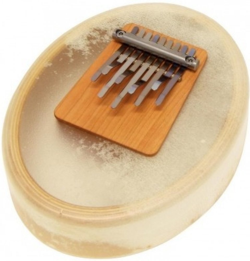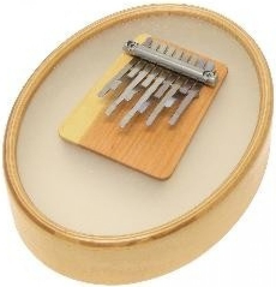 rezonanční kalimba - Sansula - A-Mol akord, dodatečné F a H - Senzační zvuk a rezonanční blána - Patentované - volně se pohybující zavěšení ozevového dřívka