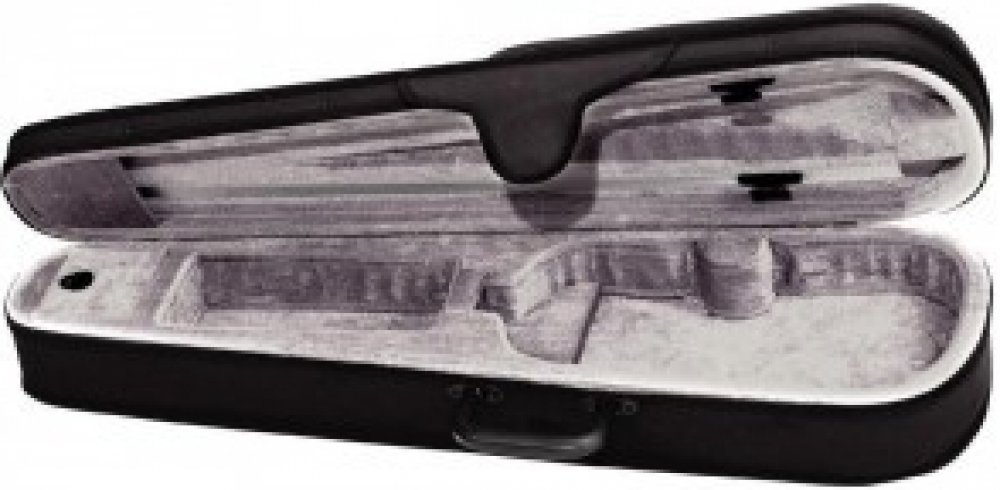 Tvarové pouzdro pro housle CVF 02 Styrofoam – skořepina - Přišroubovaný potah s malou kapsou pro noty - Vypodložení v oblasti spodní části a obruby - 2 přišité popruhy - Hmotnost ca.1,2kg - Venkovní Tex-černá - Vně samet, světle/šedý - 4/4 velikost